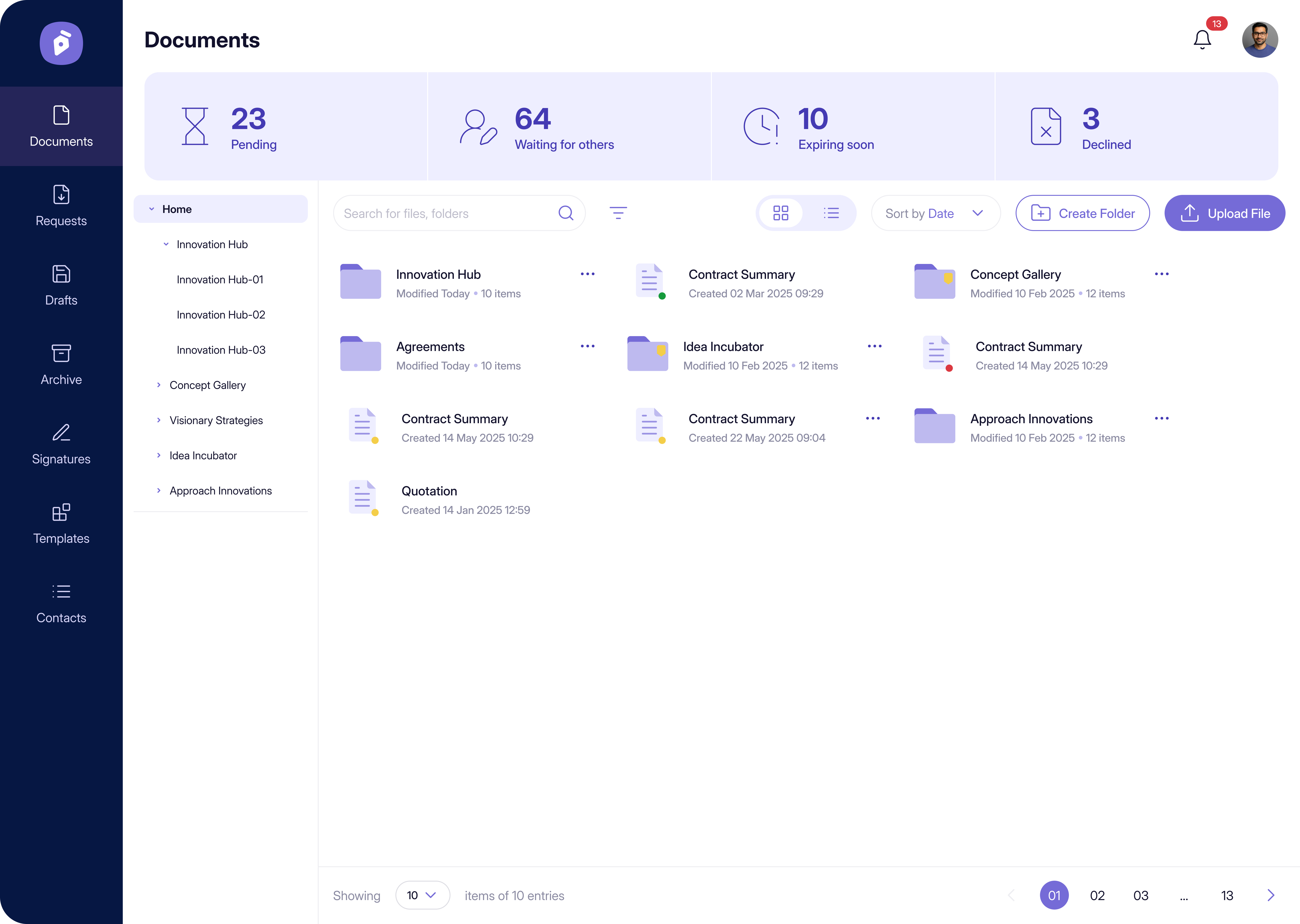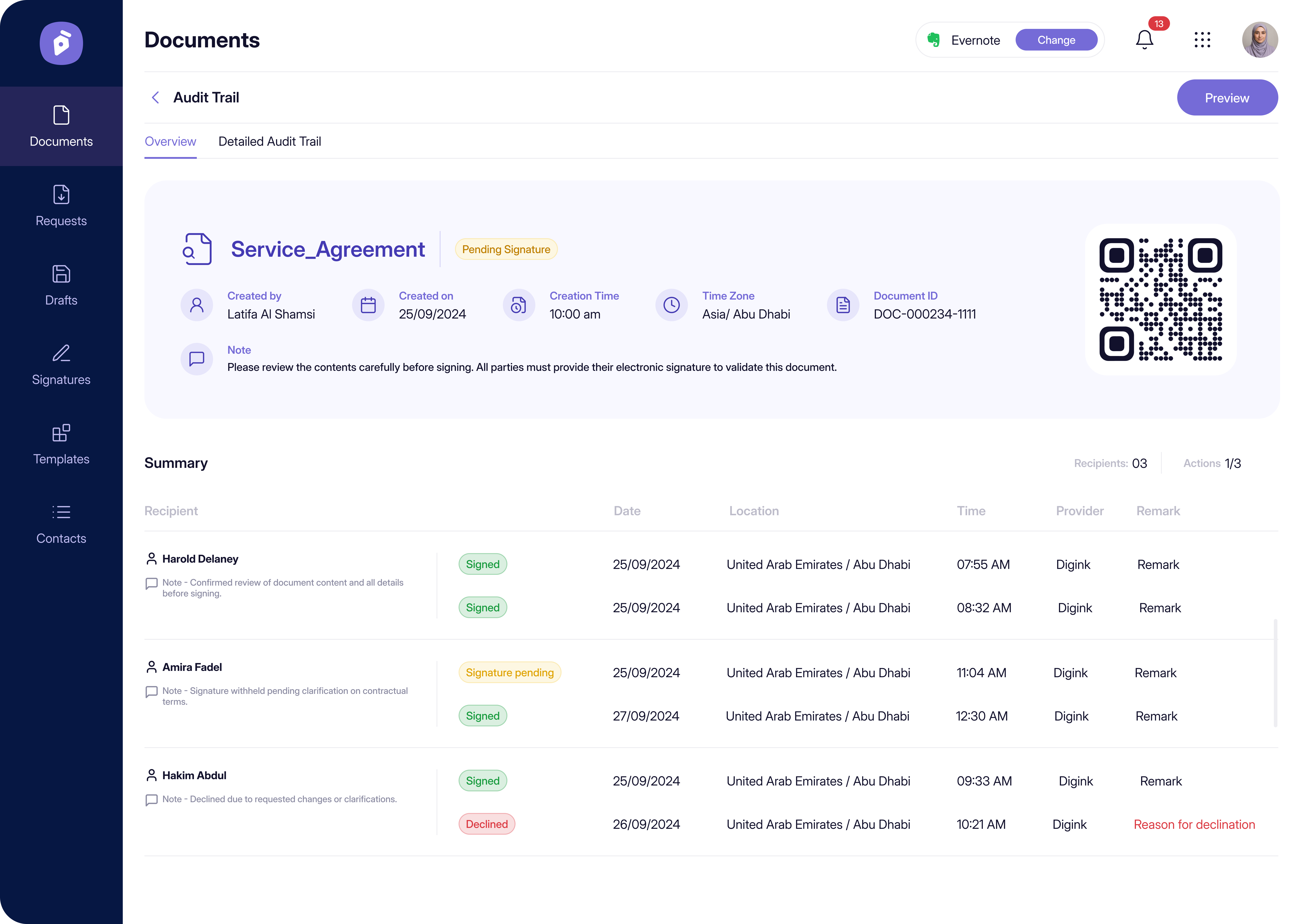 Gain a live view of every signature’s status with a detailed, tamper-proof audit trail.Never miss a step, with instant visibility into who signed, when, and where.