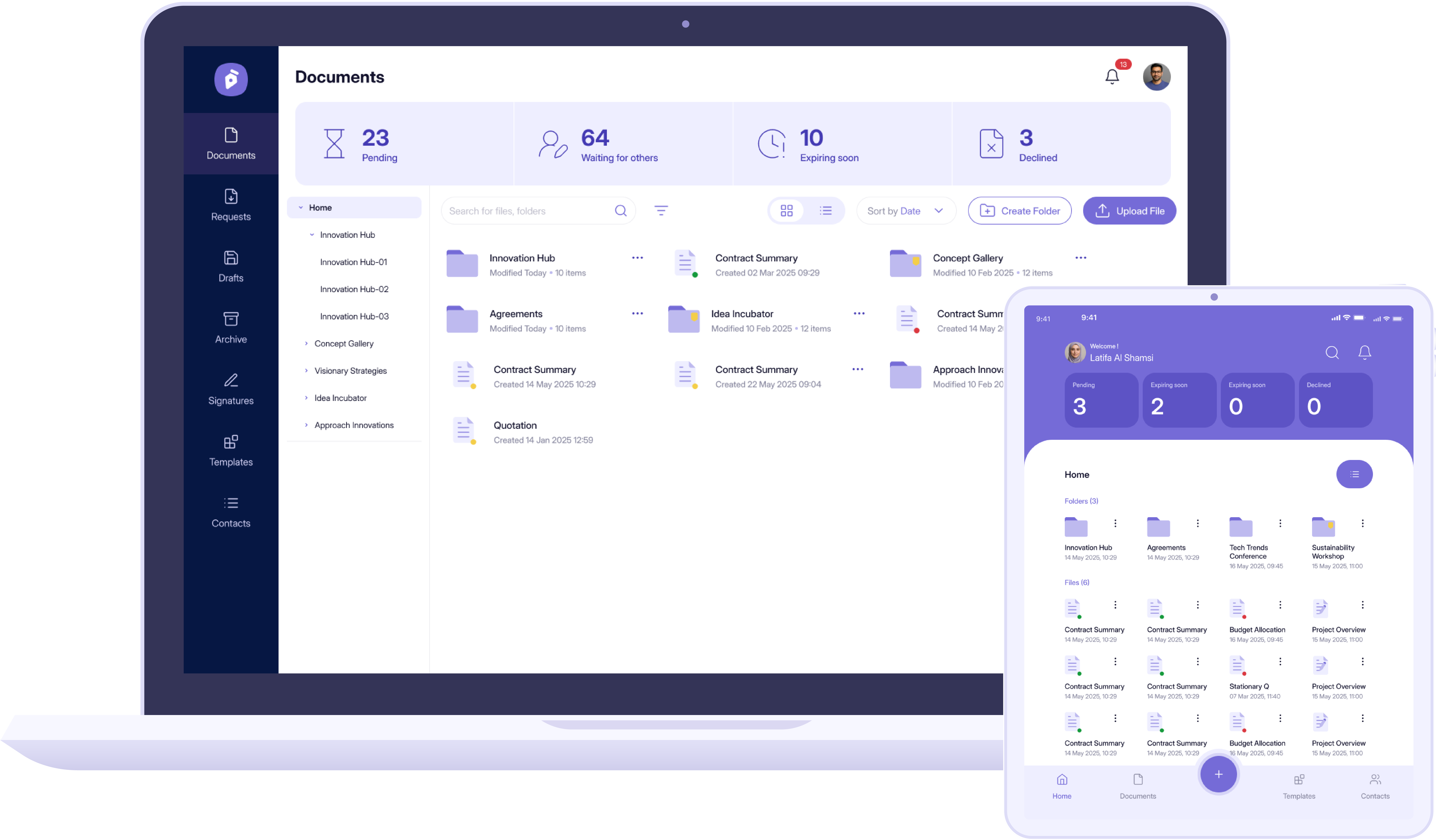 Access the platform securely via any device, including tablets, mobile phones, for responsive signing.