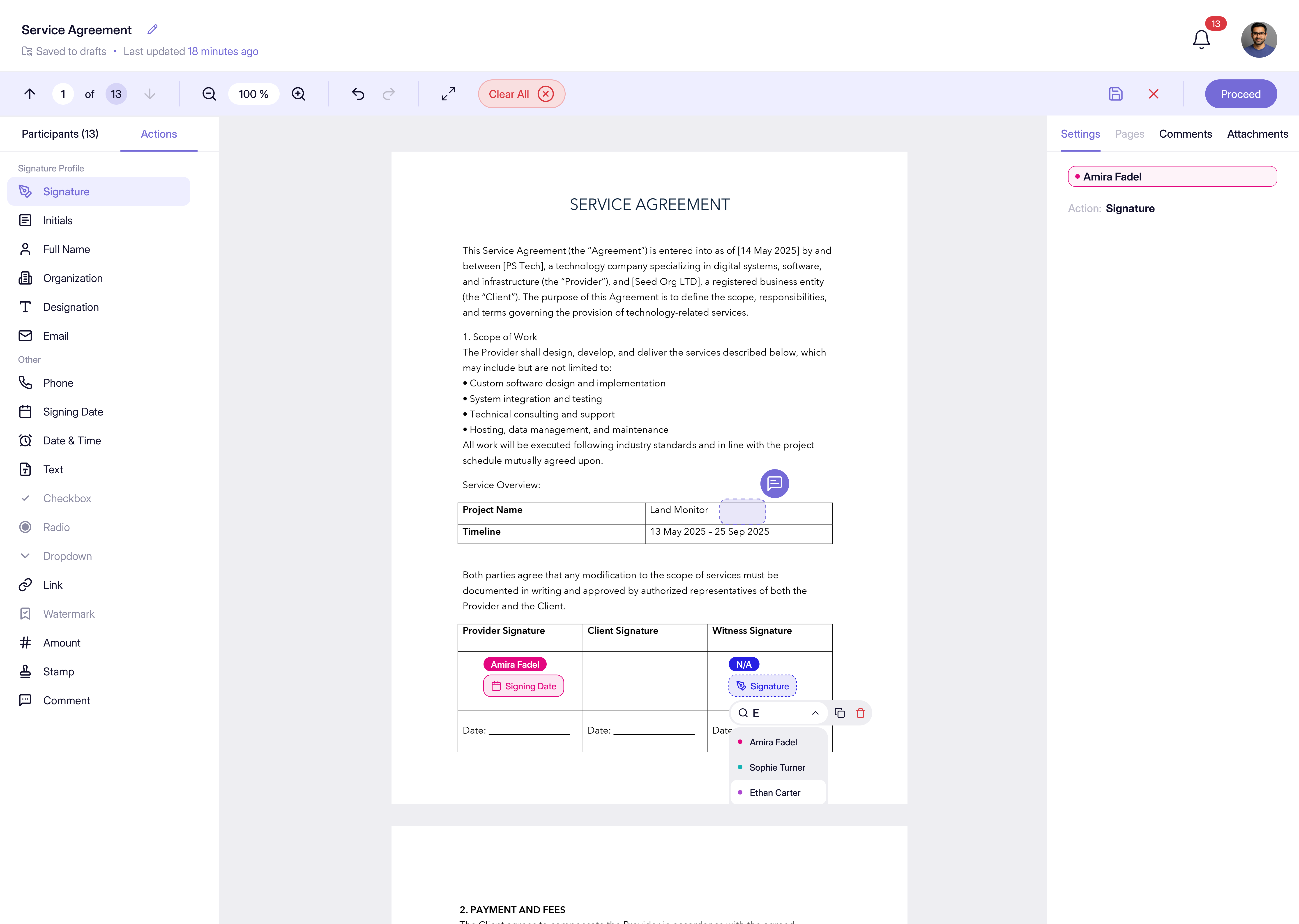 Automatically reassign signing tasks when the primary signer is unavailable - ensuring no bottlenecks in approval workflows.